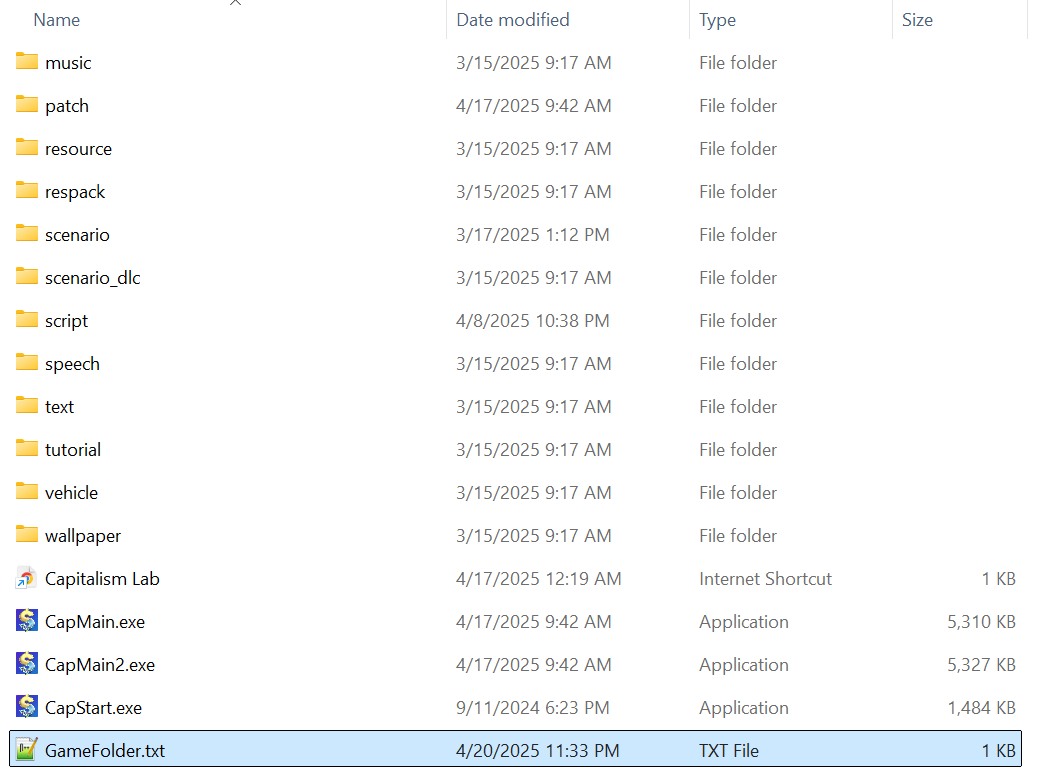 2) Extract GameFolder.TXT from the downloaded ZIP file into your Capitalism Lab program folder. (See the below section about how to locate your Capitalism Lab program folder)