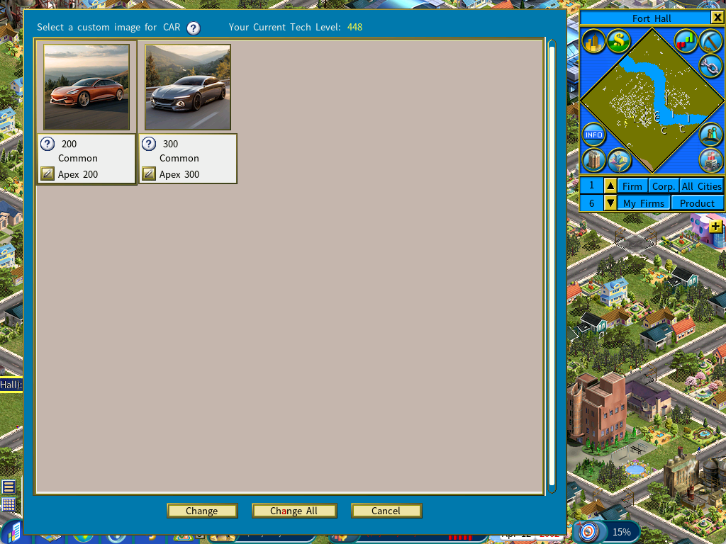 Alternatively, you may click the [Change All] button to change the production technologies of all manufacturing units in the current firm to the selected level.