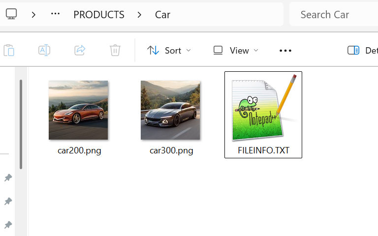 For example, if you are viewing Car, the folder opened will be: