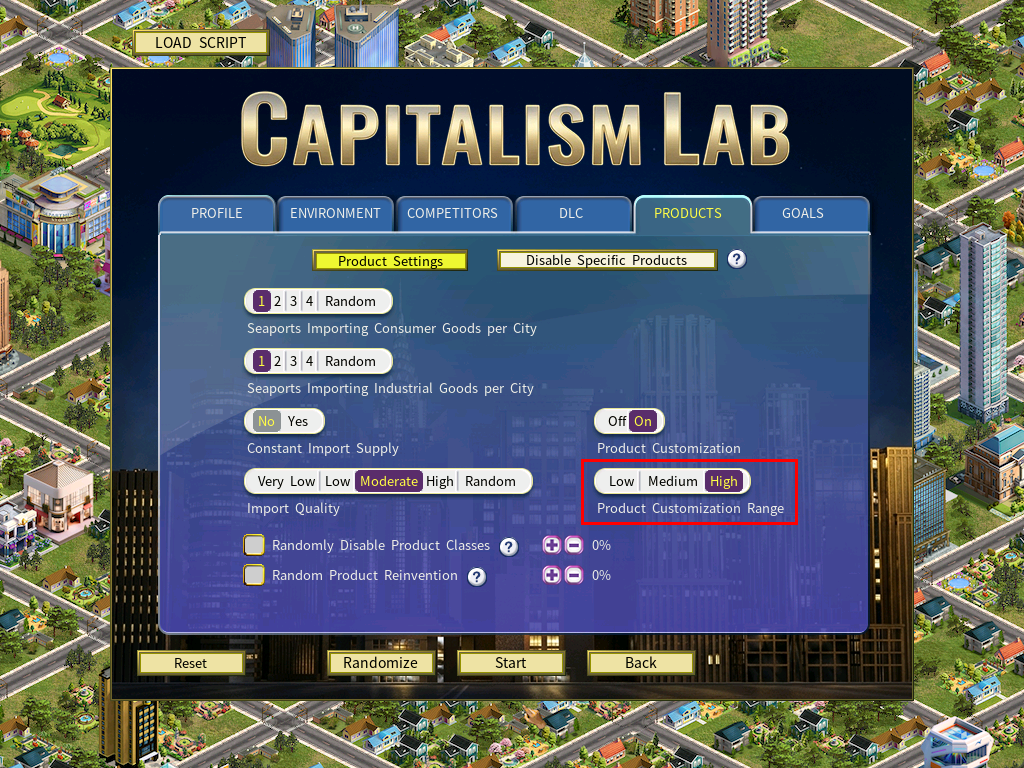 First, open the New Game Settings menu and enable Product Customization, as shown below.